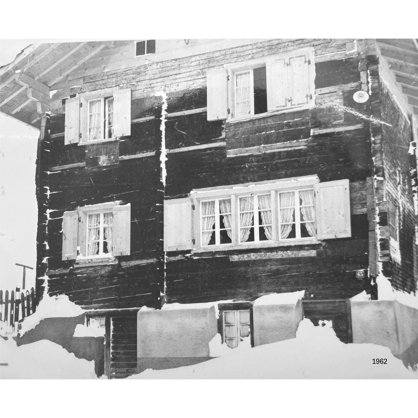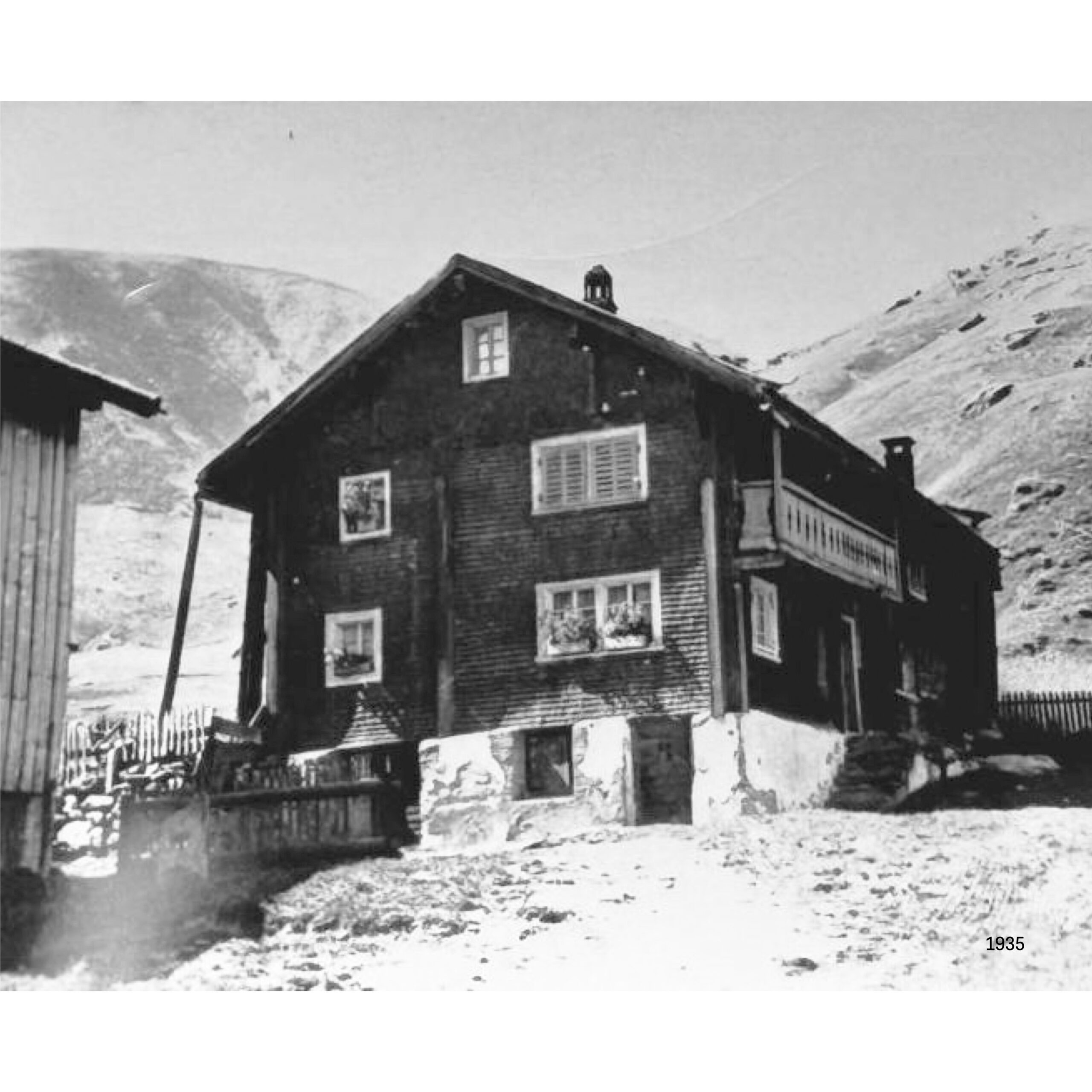 Früheste Fotografien und überlieferte Pläne deuten auf ein Baujahr vor 1900 hin. Beim Gebäude handelt es sich um ein typisches Walserhaus in traditioneller Strickbauweise, wie sie in der alpinen Baukultur häufig anzutreffen ist. Der Altbau zeigt sich in seiner ursprünglichen Form mit einer klaren Vierkammerstruktur, verteilt über zwei Geschosse. Diese Konfiguration steht auf einem massiven, verputzten Sockel aus Bruchsteinmauerwerk, der dem Haus sowohl eine solide statische Basis als auch eine klimatische Pufferzone verleiht.